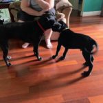 Cadillac is still growing. He is approximately 17 weeks old and weighs about 28 pounds. He is not neutered yet. He has the sweetest personality and gives kisses but doesn’t really cuddle right now. Too much puppy energy, curiosity and fear of missing out on something exciting J Cadillac is food motivated which is great for training. He has mastered “sit” and “in your house”. He is crate-trained. He sleeps in a crate with lots of stuffed toys in our room at night and is crated next to our other dogs while we are at work. He will tell you when he needs to go out when he is in his crate. He is not as good about telling you when he is playing so we are still working on house training. Keeping him on a schedule and a close eye on him when he plays are key to being successful. He is great at picking up on routines and the cues of his foster-siblings. Cadillac has not been around cats so that is an unknown. He has had limited exposure to children but he did really well at the last adoption event with all the attention from young admirers.