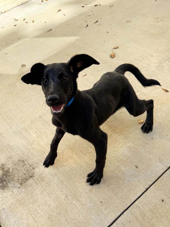 This sweet, 6 month old boy is quieter than his siblings. He waits patiently in his kennel until you let him out then he bounces around. He’s a happy pup loves playing with other dogs. He is healing amazing after his neuter and can’t wait for a family to run around with!