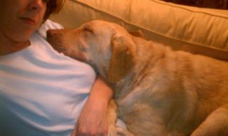 Update from Crocket’s Foster Mom: Crockett continues to be one of the sweetest dogs I have ever fostered. He absolutely loves to snuggle with his person. This photo illustrates his cuddle time position. His health has improved and his coat looks better by the day. He is so well behaved that he makes my own dogs seem a little unruly. I will miss him much when he goes but he deserves a wonderful forever home. The only two males in the house have really bonded. Crockett even uses the cat as a pillow if necessary. Lol. 🙂