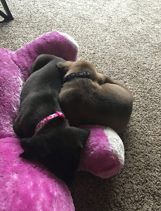 Foster Update 03/27/17: Hugs and Cupid have been doing great. They have been so cute and have made a lot of new friends, including 2 guinea pigs! We also discovered that Hugs has 6 toes on her back right foot. So, you are getting 105% of a puppy for the price of one! Hugs seems to be the more out going one. While Cupid just puts up with Hugs harassing him to play. They have been doing great learning to walk on a leash (Cupid isn’t to thrilled about it yet). We are beginning to prepare ourselves to tackle potty training.