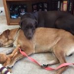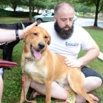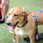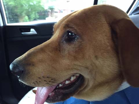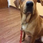 Foster Update 06/25/2017: Dennis, a two-year-old Lab-mix, just finished his first week with his fosters after he had surgery to be neutered and to repair entropion (an inverted eyelid). He is healing well and doing great! Dennis is a loving and quiet dog. We learned that Dennis is easily frightened – strange noises, doorways, etc, but we are working on these issues, and he has already gained a great deal of confidence and trust with his fosters. He loves people! The way he meets and greets new people you would think he is a politician!