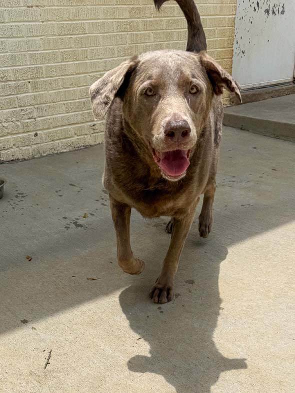 Dixie just arrived to LFS! Our vet has checked her over this morning and it’s seems that it’s been awhile since she has seen a vet. She has a couple minor infections, some potential allergies and looks to have a little pain with her knees that we will be treating. She will also be starting her diet today as shes about 40 pounds over weight More to come on this beautiful girl!