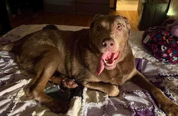 Foster Update: Dixie is the sweetest and goofiest gentle giant! She took over my bed and looked at me as if I was crazy when I told her to move. But it is hard to say no to those eyes!