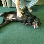 Foster update 10/29: Dozer is a happy energetic 1.5 – 2 year old black lab. He has spent most of his life outdoors without a lot of structure so he is currently in training working on his social skills as well as basic obedience. He is a work in progress but is responding well to his training. He is an energetic dog but settles well and loves attention and has no problem rolling over for a nice belly rub. He has no problem with introductions to new people and presently working on sit, down, finding his place and leash walking.