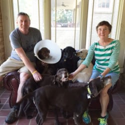 Meet GEMMA! We welcome GEMMA to Labrador Friends. Gemma (on the right in the picture) is 13 years old and has incurable cancer. Labrador Friends of the South took her into their program after she was found stray and about to be put to sleep by animal control. We actually think someone dumped her near the shelter because they knew she was sick…