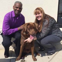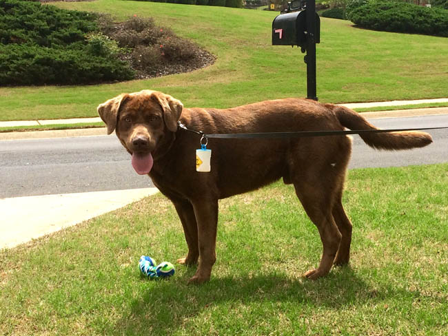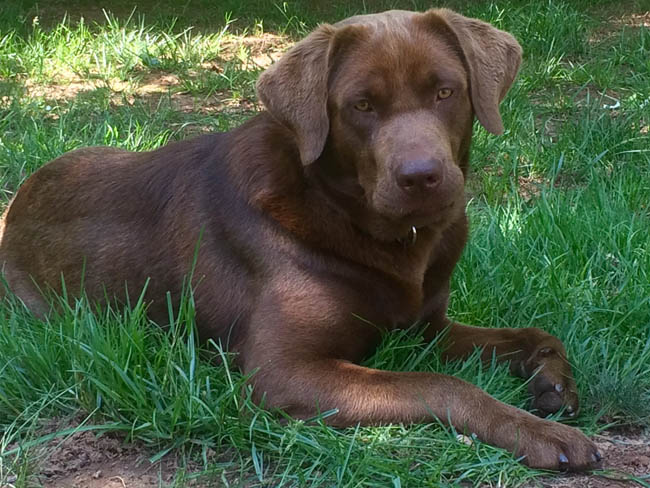 Meet GUNNER! Gunner is a 1 year old AKC chocolate boy whose family found they didn’t have time for an energetic lab. He is a big boy, but he is good with other dogs & people. He is housetrained & crate-trained, & does well on a leash. He has had basic obedience training but since his family didn’t have much time to reinforce any of the lessons he learned, some guidance & leadership would be good for him. He’s very eager to please, he just needs a consistent owner who will commit to the exercise & care he needs. He’s a handsome boy!