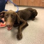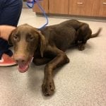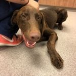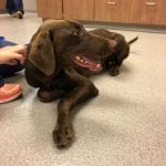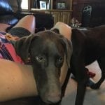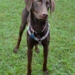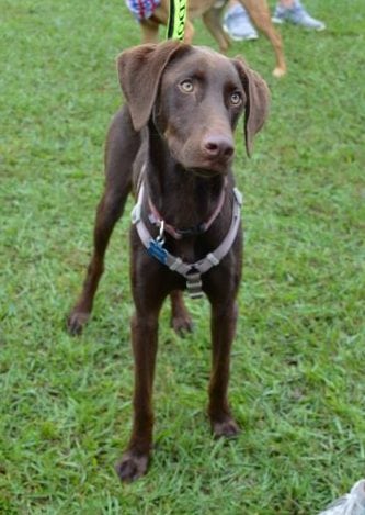 Foster Update 07/03/18: We have had Houston a few days now. Someone obviously did not treat him well. He is nervous in new situations or around loud sounds. He has already begun warming up in our home and loves to follow us around the house. Even though this sweet boy is only 9 months old and looks like he is part weimaraner, he is really calm. He is such a cuddler and just wants to be with you. He also loves the dog park and shows his true self while running around and playing with the other dogs. He loves having our dog as company. He finds security in her and would love to have another furry friend in his new home. We don’t know how he is around cats but I think he would be fine. We do think he needs to go to a home with older children since the loud noise and fast movements are a little overwhelming for him. He is also great on the leash! We have a little bit of work to do on jumping but he is very respectful of the house, hasn’t barked, chewed up anything, or jump on the furniture. This sweet boy would make a great addition to anyone that wants some chocolate in their life!