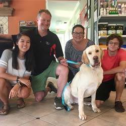 Another update on Briscoe (fka Koda): we’ve tapered off the steroids and are now steady on eye drops for another few weeks before his next checkup at UGA VTH. He can see as well as any other dog with vision in just one eye, but boy do we love this big fella somethin’ terrible. We just took him on his first family vacation – 3 days in the NC mountains – and he was fantastic. He played, he slept, he traveled, and everywhere we went Briscoe made new friends. He’s still very skittish when he meets a new grown man, leading us to believe that he originally injured his neck trying to escape a man who may have hurt him. But once we tell him “Briscoe, it’s ok”, he warms up. Everyone loves Briscoe! He has even made good friends with 2 of our 4 rescue cats. The third will just take time, and the 4th cat hates everybody, so we’re not concerned about her. We are so very happy we adopted Briscoe into our family!