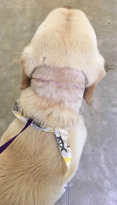 Koda Update 05/30/19: Koda is doing amazing! His neck would is healing just as we would want. He will have a scar, but when his hair grows back it shouldn’t be too noticeable. He has a lot of energy and doesn’t know any commands that we can tell. He has a very goofy personality. He loves playing with other dogs but doesn’t know what toys are yet.