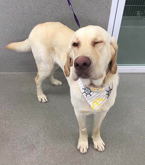 MEET KODA: *Warning, Graphic Photo* – Koda, a 2.5 year old male yellow lab mix. Koda clearly hasn’t had the best life so far. He was found by a good samaritan with a gruesome injury to his neck, apparently from an ingrown chain or wire. The nice person who found him brought him to the shelter, where he was immediately taken to a vet to be treated. LFS was contacted to help, and now Koda is safe, but his journey is not yet over. Over the next few weeks, Koda will continue treatment to heal his neck. While he remains in great spirits and is the sweetest boy, it may take several weeks for him to heal, and he will likely be left with a scar from his ordeal. If you’d like to donate to Koda’s cause and help us get him better, please go to https://labradorfriends.com/