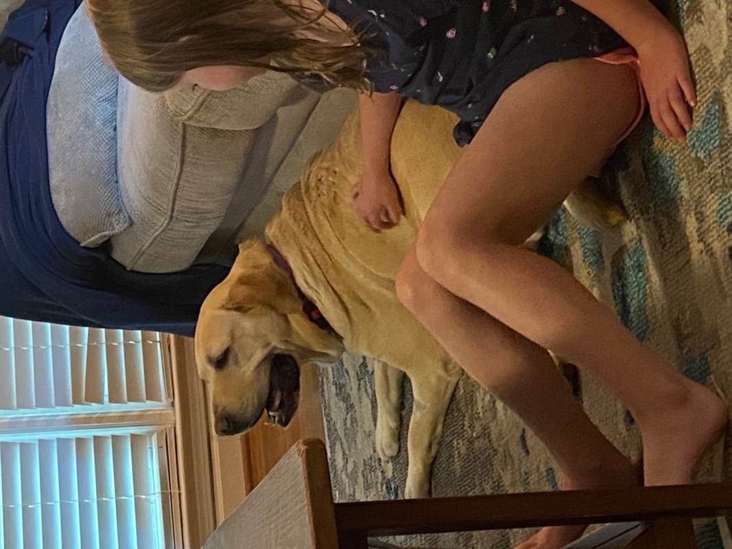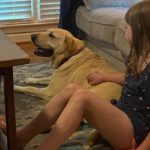 On our walks she is very easy, with no pulling. We even let our daughter hold her leash, with no worries. As for interacting with our children (6 y/o and 4 y/o), she adores them already. We even saw her “protecting” them from our robot vacuum this morning by keeping right by their side while it was running! Maddie for short just wants to be close to her people, get belly rubs (her favorite thing), and treats, of course. She eats well and we’d describe her as “food motivated”, like most labs.