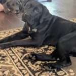 Update 06/5/2020: Paddy has continued to gain more confidence everyday and show us her fun, goofy, loving personality! She is potty trained and still learning that the crate is a good thing! Without knowing her past she seems to have anxiety from small confined spaces so we have found that putting up baby gates for a room eases her anxiety rather than the crate, though I feel confident it will just take time for her to learn. She loves to run and play and has the “bounce run” like Boxers! She settles right down inside and has really learned to love the dog beds! Haha. Her leash manners are coming along as well. She wants to give you all of her love so anyone who adopts her will have a very loving and committed companion.