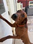 Red is a 4-year-old coonhound with the sweetest soul and the softest eyes. Found alone on the road two years ago with no chip and no one ever coming for him, Red has done nothing but love hard ever since. He is fully potty trained, crate trained, and great with other dogs. He would do well in a home with older kids.